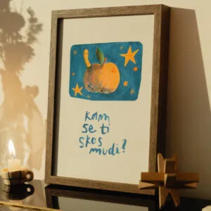 Velikost printa je 21 x 30 cm (A4). Okvir ni priložen.