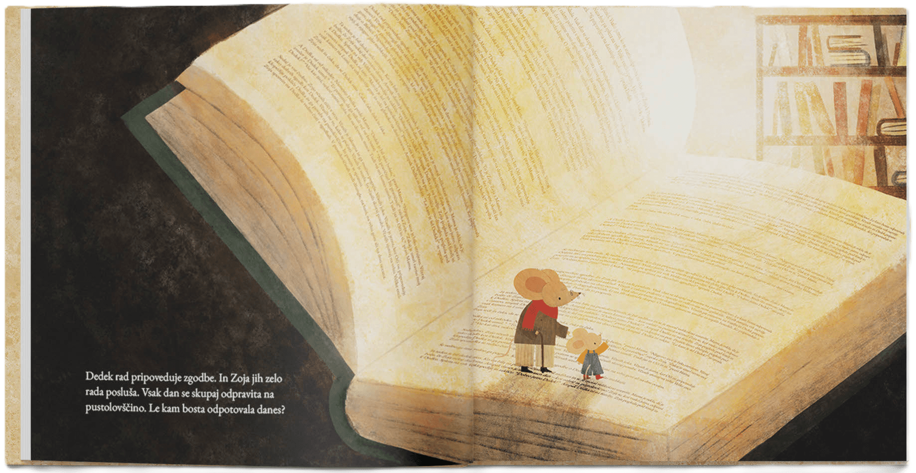 Otroška slikanica, ki preko zgodbe o mišji družini odpira tematiko o žalovanju, smrti in umiranju. Glavna junakinja miška Zoja in Dedek se podajata na številne pustolovščine.