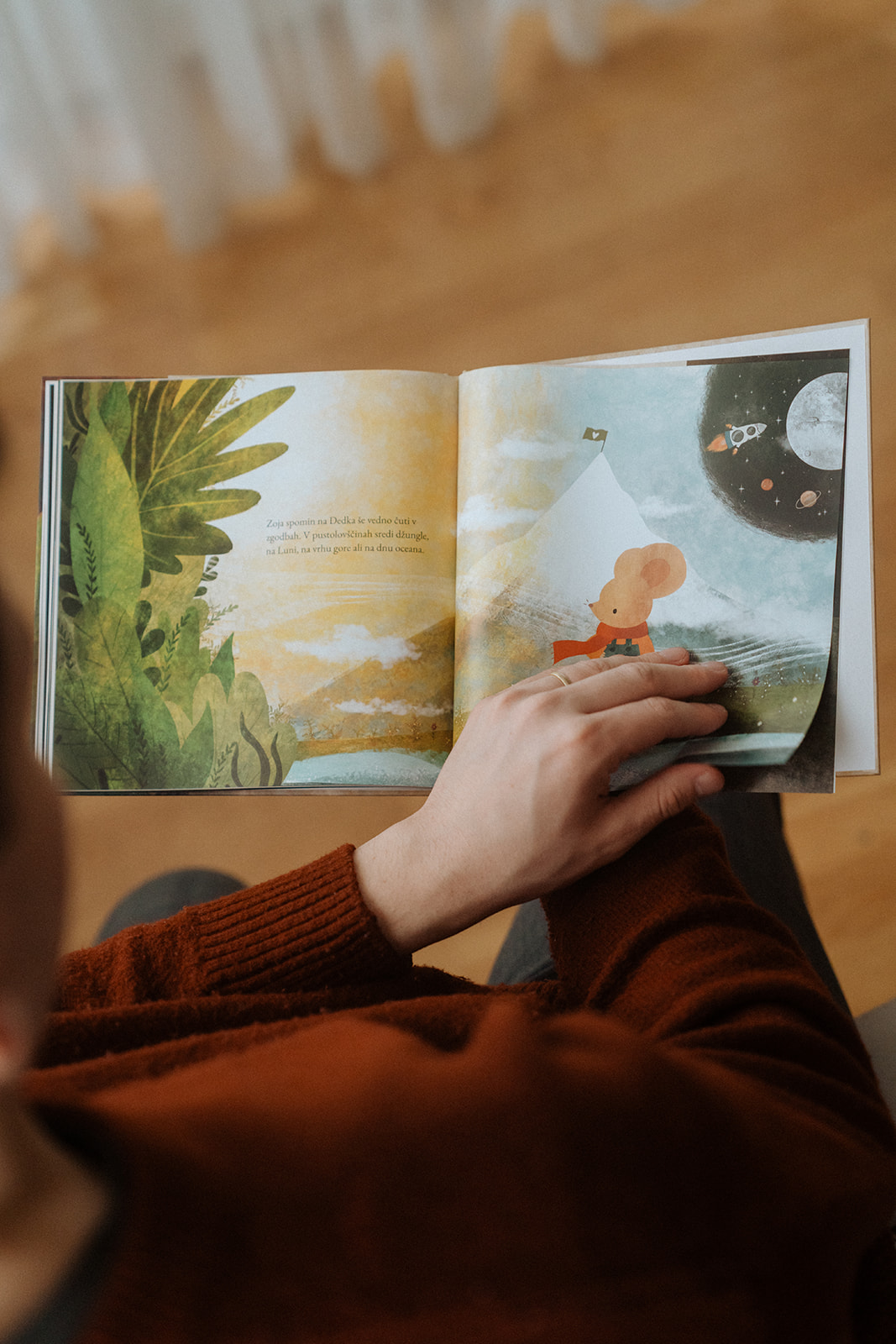 Otroška slikanica, ki preko zgodbe o mišji družini odpira tematiko o žalovanju, smrti in umiranju. Glavna junakinja miška Zoja in Dedek se podajata na številne pustolovščine.